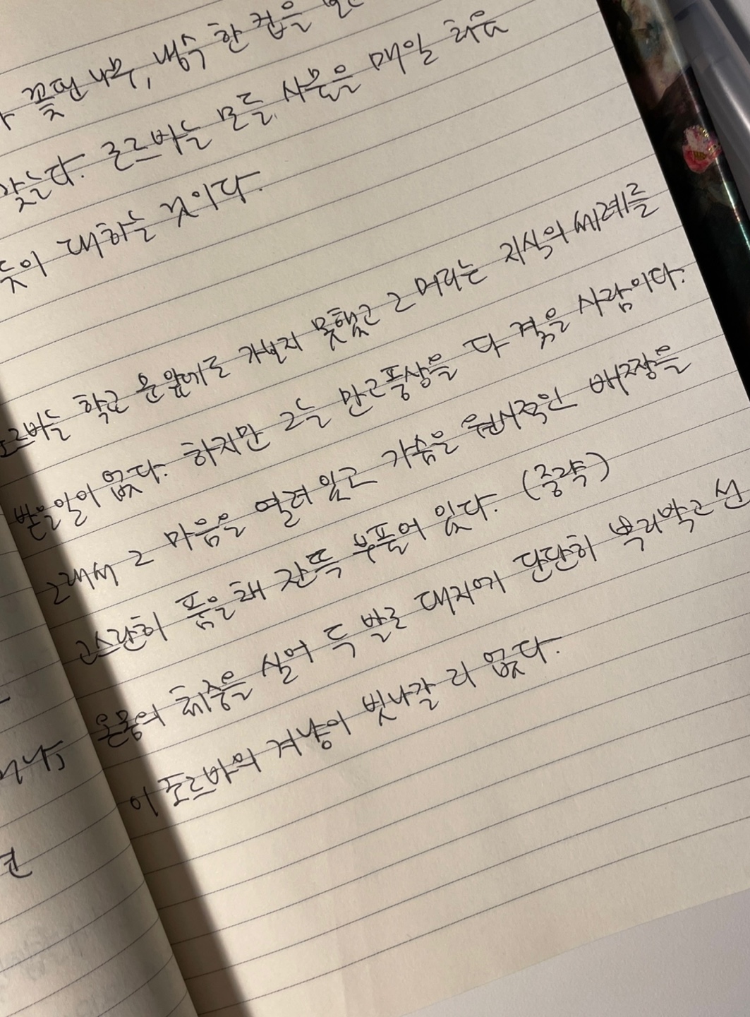 노트에 필사한 <그리스인 조르바> 속 한 대목