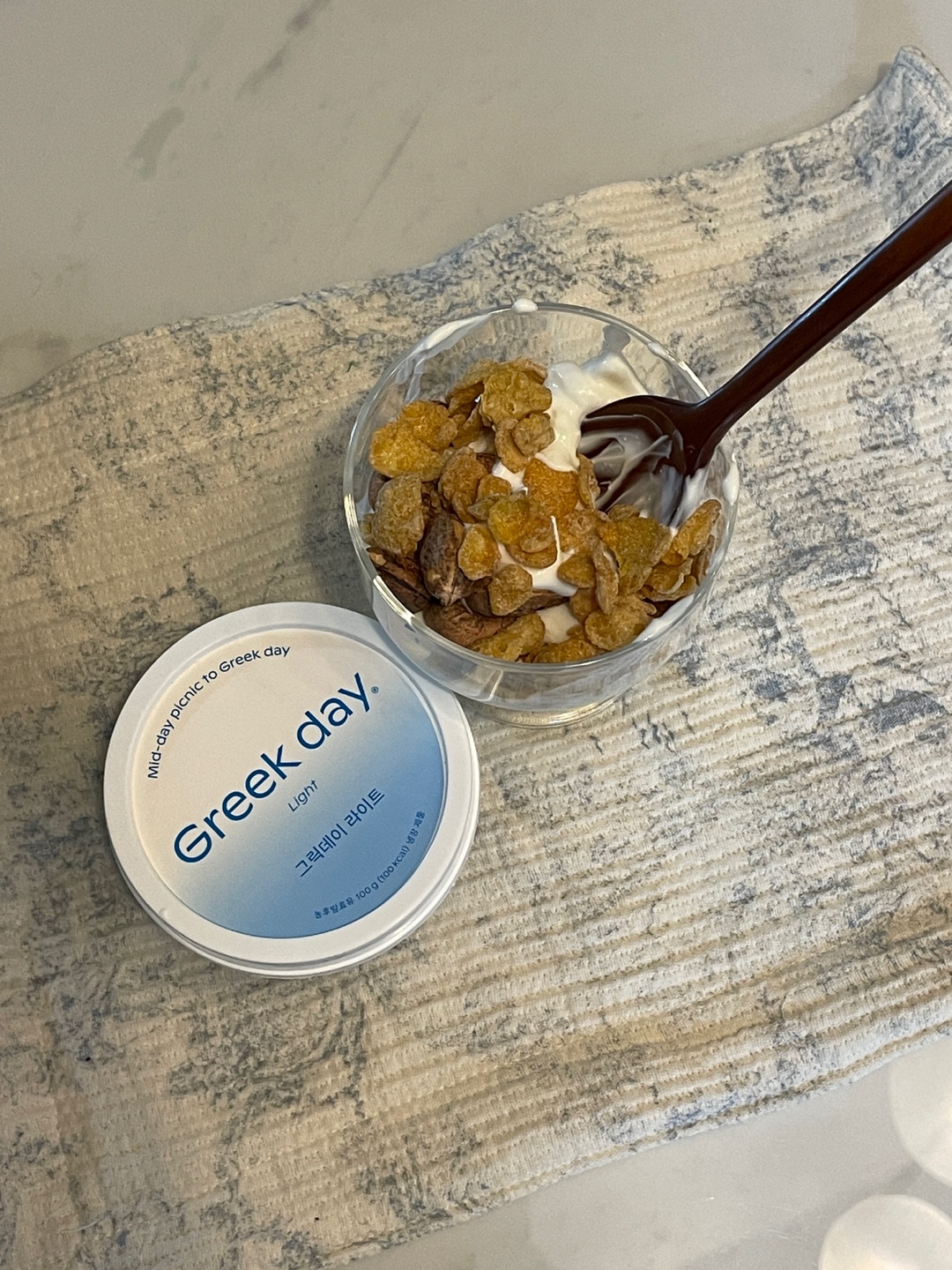 그릭데이 라이트에 소장한 시리얼과 견과류를 섞어 즐거움을 더한 어느 아침