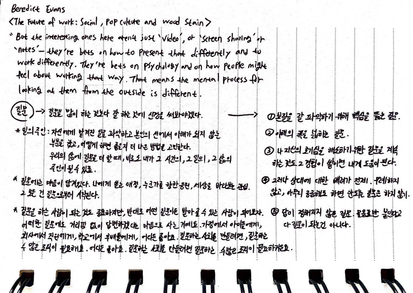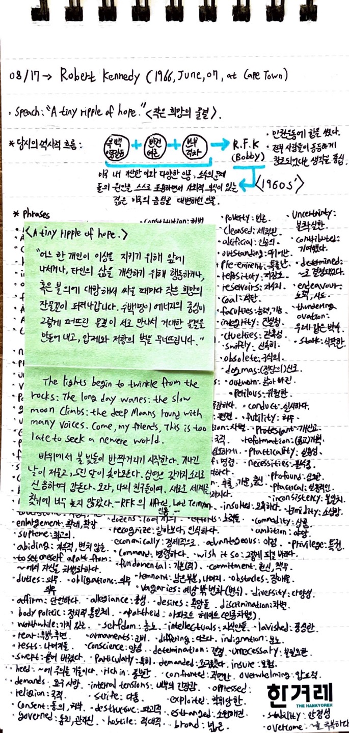 매일 한 챕터 혹은 한 페이지의 글을 읽으며 유의해야 할 단어들과 호기심이 생기는 주제에 대해 공부하고 주석 형태로 인덱싱한 기록