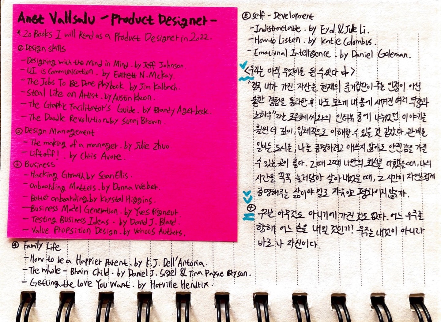 연말의 셀프 인터뷰 형식의 메모 & 한 해의 계획을 시각화한 메모