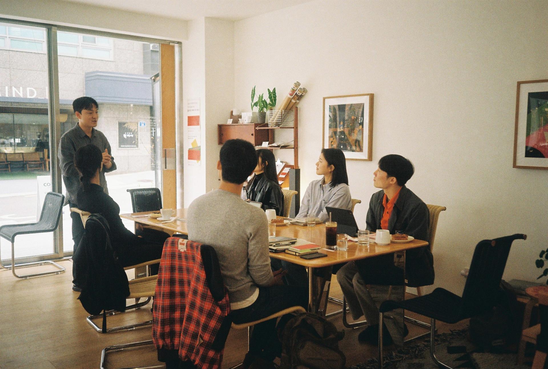 선사마 번역과 모노클 허들링을 진행해 온 Achim의 정다운 친구 희석 님과 초창기 Achim의 밑업에 참여한 적 있는 주현 님, 밑업은 처음이라며 수줍게 인사를 건넨 연정 님과 나윤 님, 그리고 Achim의 디렉터 진 님과 파트너 에디터인 나까지. ‘쓰는 사람’ 여섯이 모여 기다란 테이블에 둘러앉아 인사를 나눴다.