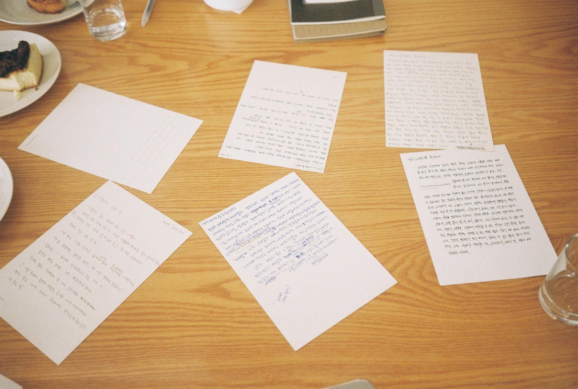 아무것도 쓰지 않고 돌아가기엔 영 아쉬운 자리. 우리는 15분간 각자 고른 Achim 엽서에 글을 썼다. 주제는 ‘나의 2023년을 돌아보며’. 조금은 이른 감이 있지만, 봄을 지나 여름 거쳐 이 가을, 이 시간이 오기까지 우리 안에 쌓인 게 많으리란 걸 모르지 않았다.