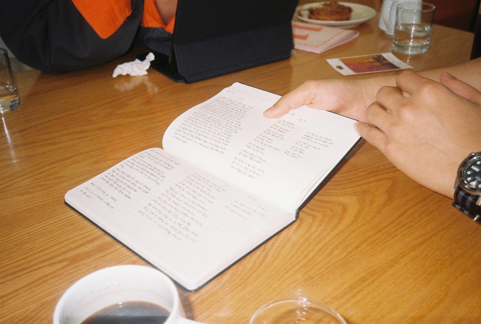 희석 님도 진 님처럼 세 가지 자아로 글을 쓴다. 프리랜스 전시 기획자로, 디자인 전공 대학원생으로, 그리고 “가장 좋아하는 자아”인 시인으로. 특히 일상에서 우연하게 마주한 “좋은 느낌”을 시로 풀어낸다는 희석 님은 우리에게 자작시 ‘예찬’을 들려줬다. 학교 도서관에서 사랑에 빠진 연인을 지켜보며 “사랑한다고 말하지 않아도 사랑함을 느낄 수 있었다.”는 희석 님은 그 순간의 느낌을 시에 담았다. 희석 님의 안온한 목소리로 시를 들으며, 좋아하는 시를 쓰는 기쁨 역시 사랑처럼 말하지 않아도 전해지는구나 생각했다. 또 희석 님은 아날로그적인 사람이라 손으로 쓸 때 생각 정리가 잘 되고 기억에 더 많이 남는다며 논문 내용을 정리한 프린트물과 함께 좋아하는 시로 빼곡히 채운 필사 노트를 보여 줬다. 모두가 감탄하자 희석 님은 말했다. “매년 신춘문예에 도전하고 있어요. 시가 너무 좋아서요.” 그 단단함에 나는 희석 님이 아주 오래도록 좋아하는 시를, 좋은 시를 써낼 것이라고 감히 확신했다.