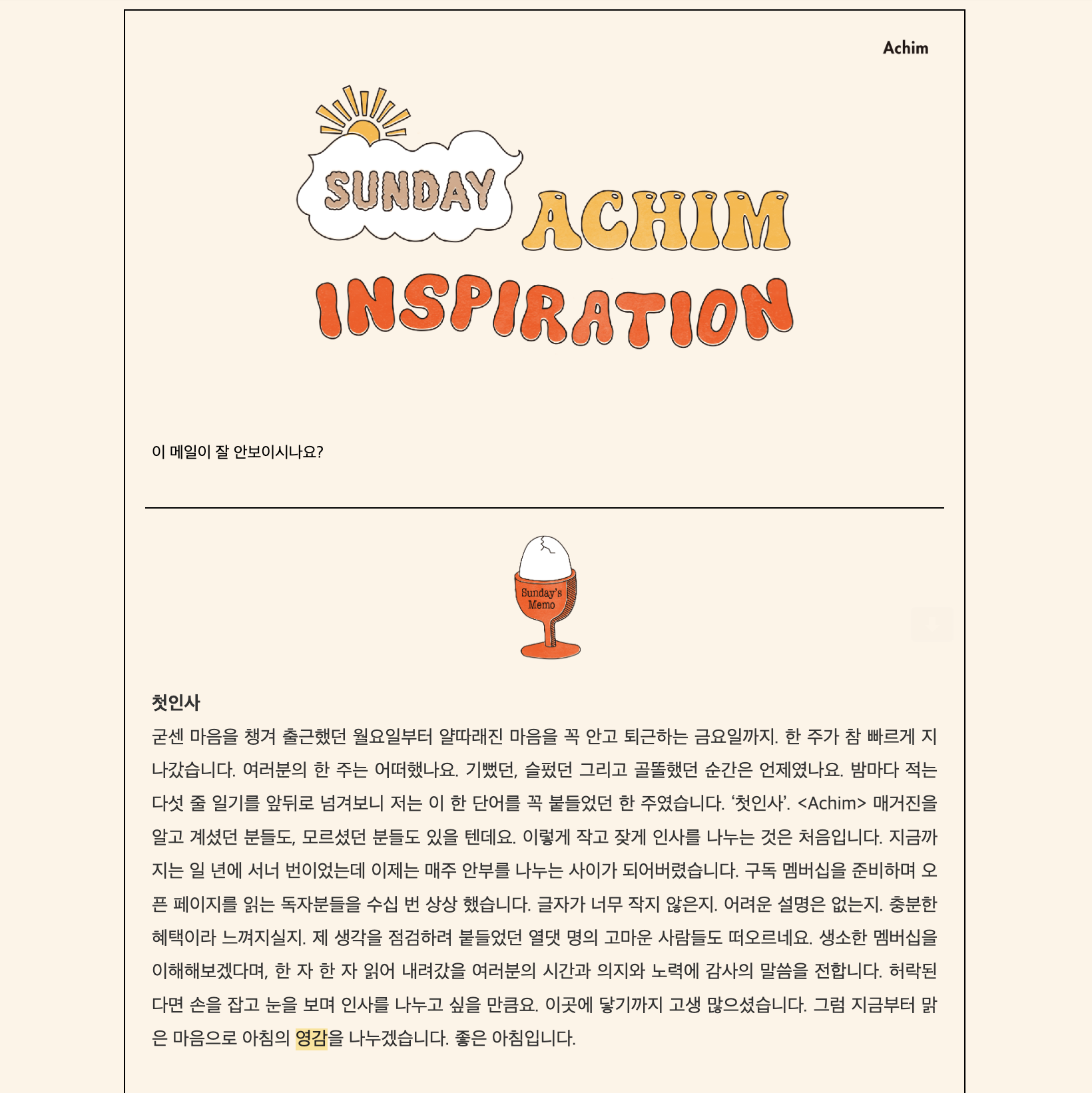 새로 개편된 Achim 멤버십에 대해 이야기하기 전에 멤버십 변천사를 간단하게 돌아볼게요. 맨 처음 멤버십의 필요성을 생각한 건 ’매거진 정기 구독‘을 바라는 모닝 오너분들의 요청 덕이었어요. 그 필요를 충족하고자 Achim에 걸맞은 정기 구독 상품을 준비하던 중 한 가지 아이디어를 떠올렸습니다. 매거진 신간을 분기마다 보내드리는 동시에, 조금 더 자주 그리고 긴밀하게 연결될 수 있도록 매주 새로운 영감을 나누면 좋을 것 같았어요. 그렇게 Achim의 뉴스레터 서비스 ‘일요영감모음집(이하 일영모)’을 멤버십 혜택으로 기획했습니다. 당시에는 운영의 복잡함을 고려하지 못하고 뉴스레터 및 매거진 수신 여부에 따라 멤버십을 총 네 가지 유형으로 오픈했어요. 혹시 Achim 초창기 멤버십을 기억하시는 모닝 오너분 계실까요? 밀크, 시리얼, 그래놀라 그리고 뮤즐리까지. 멤버십 유형을 곡물의 가공 및 영양 단계를 따라 재밌게 지어봤습니다. (저만 재밌었던 걸 수도 있고요...)