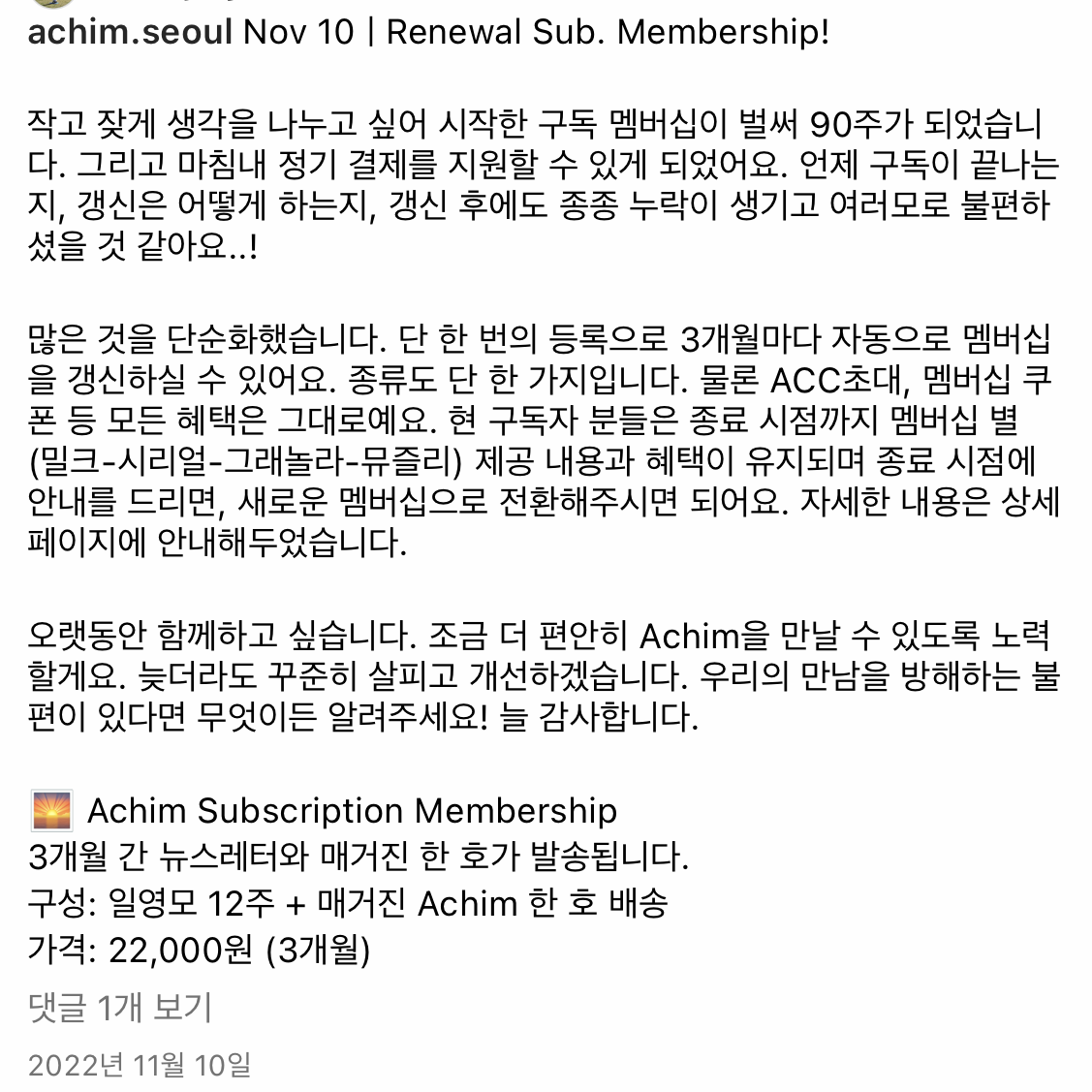 2022년 11월 9일 - Achim 멤버십 일원화